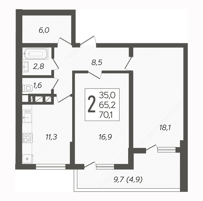| свободная планировка | 65.9 м² | от 6 168 240 руб. (93 600 руб./м²) | Планировка | Этаж: 2, Литер 2 |