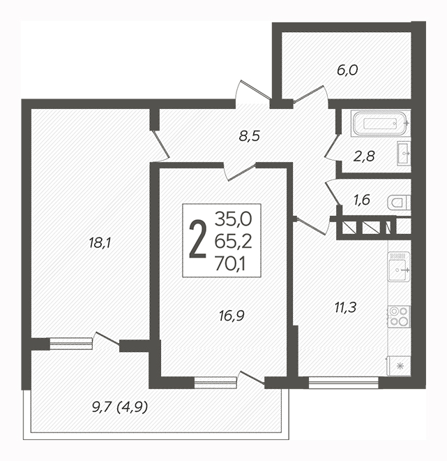 | 2 | 68 / 35 м² | 7 350 000 руб. ( Выгода: 1 408 400 руб. |