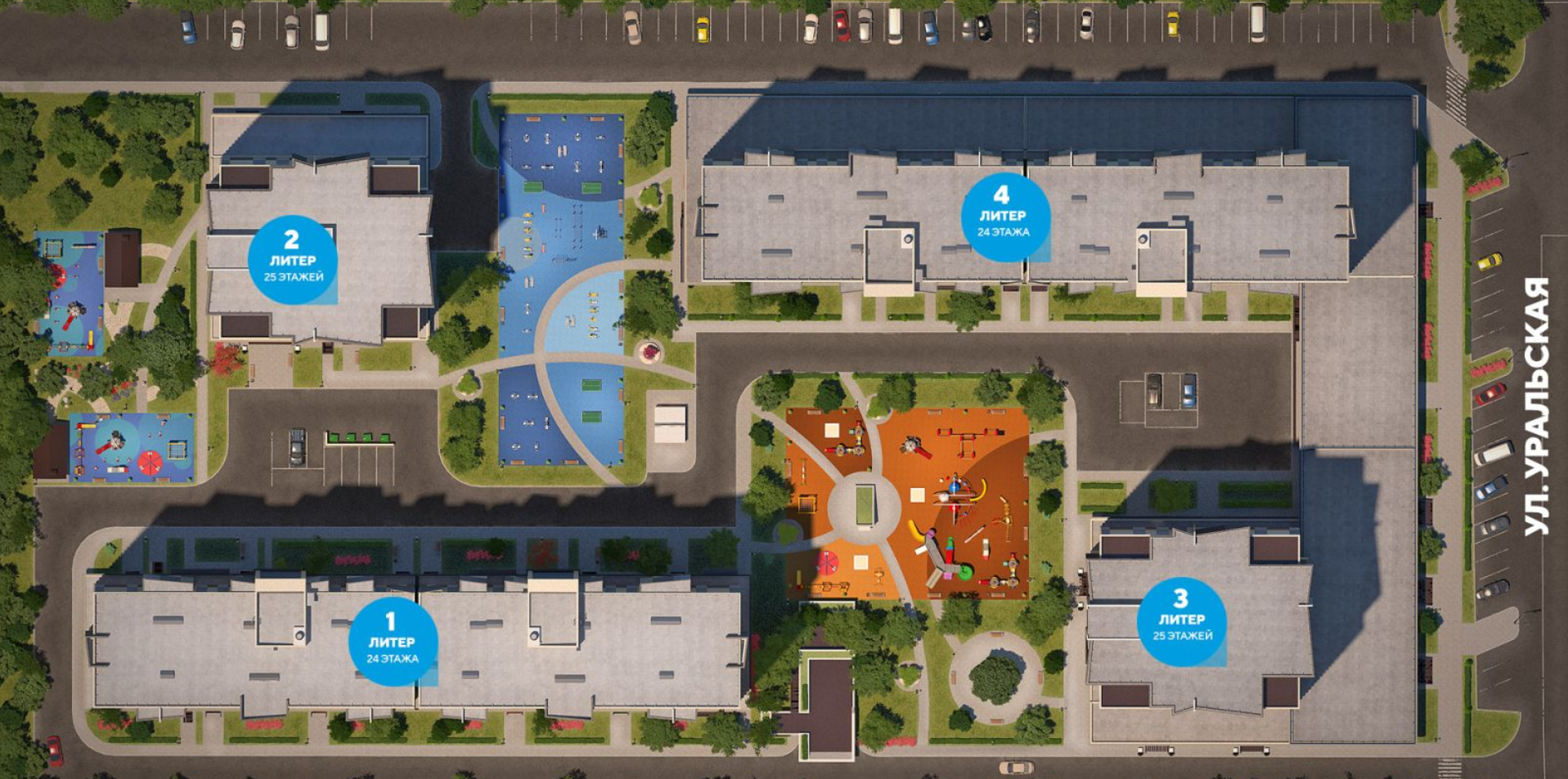 территориальное расположение комплекса просто ужасное. с одной стороны уральская в 20 метрах,с другой новороссийская. по обеим улицам активно двигаются крупногабаритные тс,пыль с дороги,шум. по новороссийской каждые выходные по ночам гоняют гонщики. очень крутой район,ничего не скажешь)из плюсов только наличие галактики и сбс в непосредственной близости. все,плюсов больше нет.