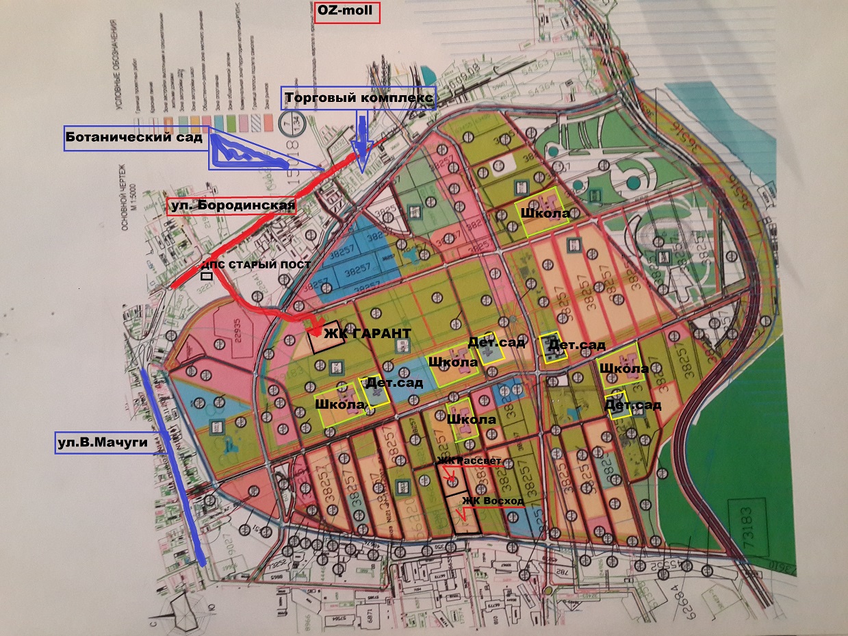 Детей придётся отвозить в школы, детские сады и поликлиники по ул. Мачуги в объезд.  Напрямую близко, дорога есть через поле. Идти до остановки довольно долго. Качество не самое лучшее.