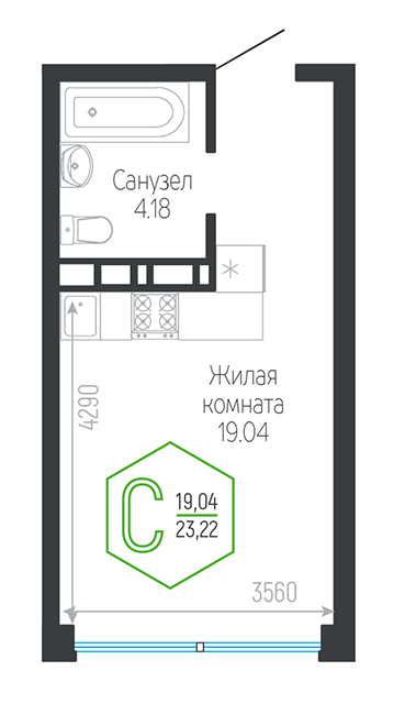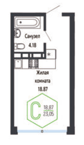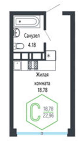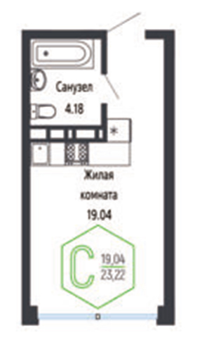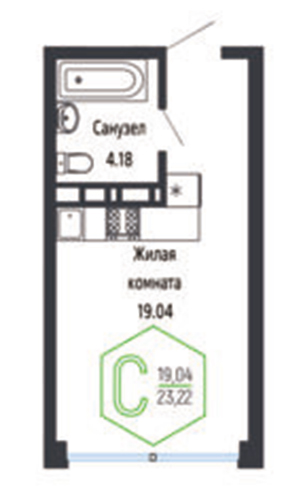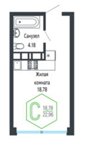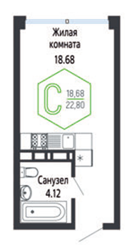 студия 22.8 / 18.68 м² от 5 472 000 руб. (240 000 руб./м²) Планировка
