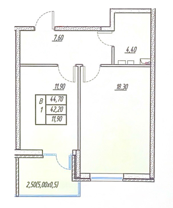 | 1 | 44.7 / 11.9 м² | от 5 140 500 руб. (115 000 руб./м²) | Планировка | |