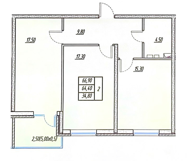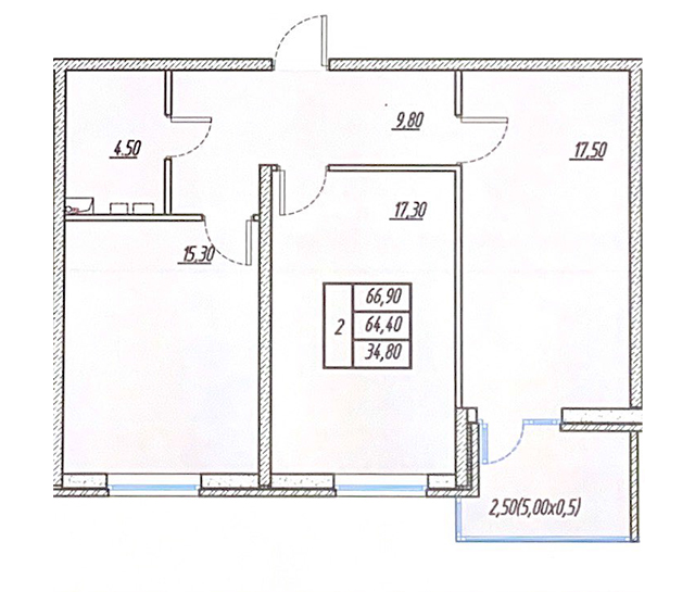 | 2 | 66.9 / 34.8 м² | от 6 690 000 руб. (100 000 руб./м²) | Планировка |