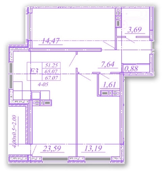 | 3 | 67.07 / 51.52 м² | Планировка | ||