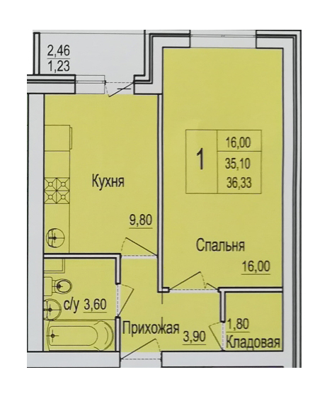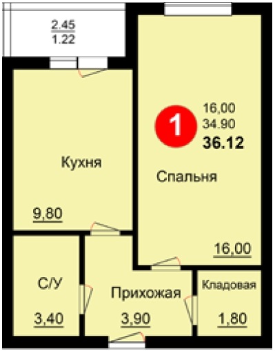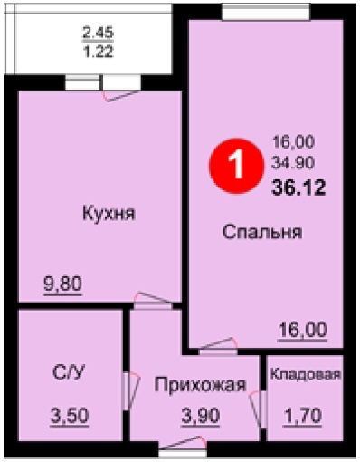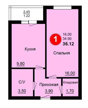 | 1 | 36.1 / 16 м² | от 3 537 800 руб. (98 000 руб./м²) | Планировка | |