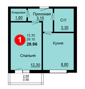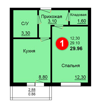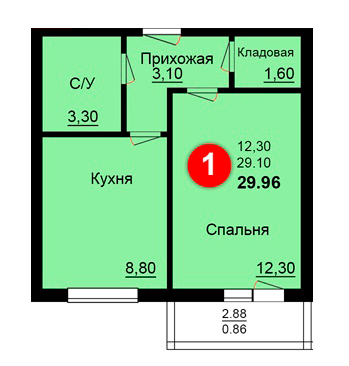 | 1 | 30.8 / 12.3 м² | от 3 018 400 руб. (98 000 руб./м²) | Планировка | |