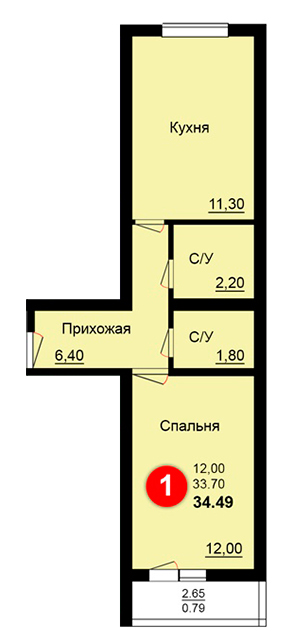 | 1 | 34.0 / 12 м² | от 3 332 000 руб. (98 000 руб./м²) | Планировка | |