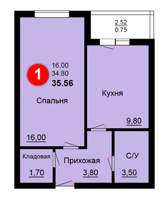 | 1 | 38.0 / 16 м² | от 3 724 000 руб. (98 000 руб./м²) | Планировка |