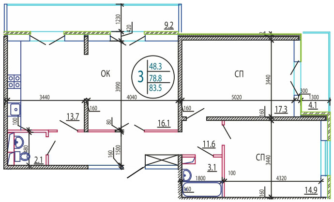 В ЖК продаются одно-, двух-, трех- и четырехкомнатные квартиры с грамотной планировкой, их общая площадь варьирует от 42 до 180 квадратных метров. На мансардных этажах будут размещены пентхаусы. Помещения сдаются с отделкой "под ключ": будут установлены счетчики на воду и отопление, системы кондиционирования, радиаторы отопления, электроразводка, входная дверь и полное остекление квартиры.
