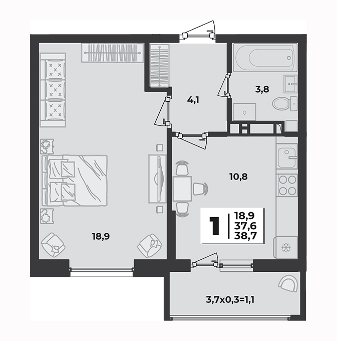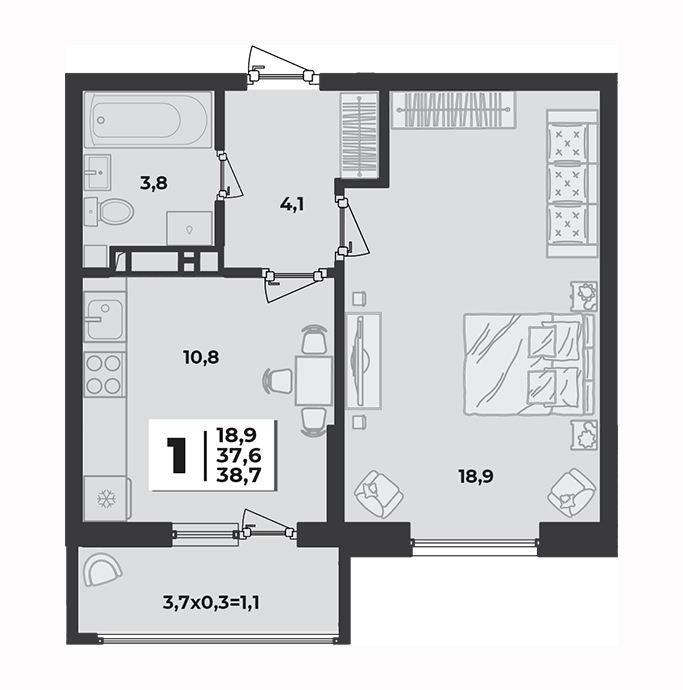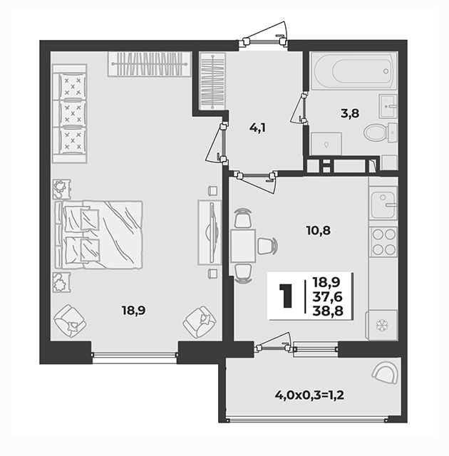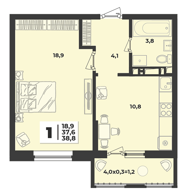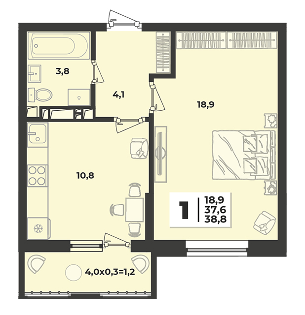 | 1 | 38.8 / 18.9 м² | от 6 154 280 руб. (158 615 руб./м²) | Планировка | |