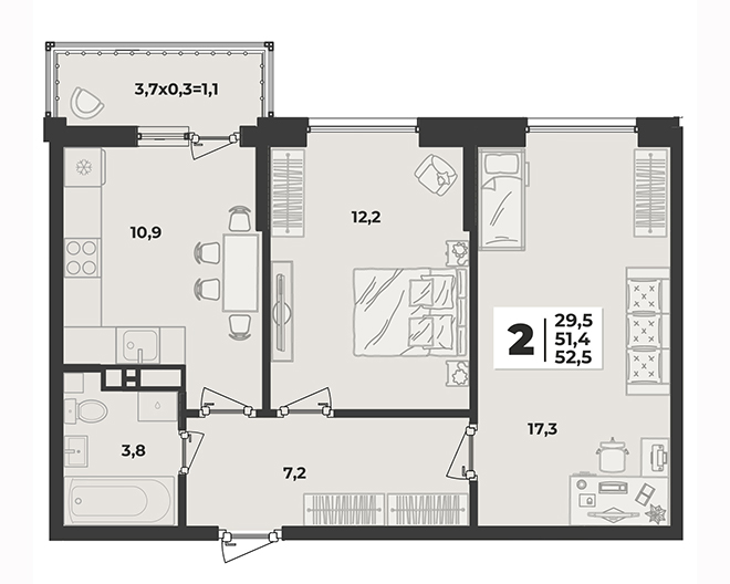 | 2 | 52.5 / 29.5 м² | от 7 837 250 руб. (149 281 руб./м²) | Планировка | |