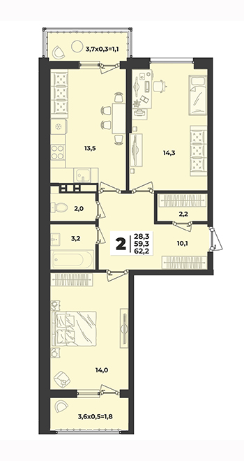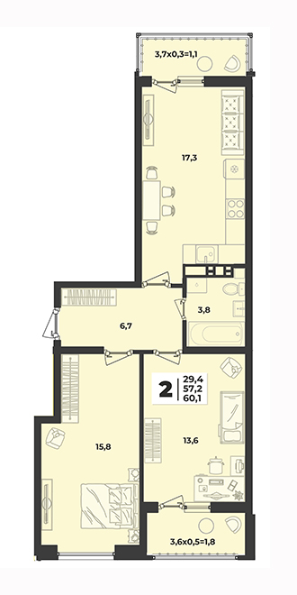 | 2 | 60.1 / 29.4 м² | от 8 241 680 руб. (137 133 руб./м²) | Планировка |