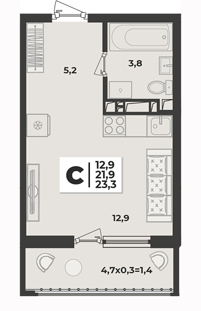| 1 | 23.3 / 12.9 м² | от 4 204 680 руб. (180 458 руб./м²) | Планировка | |