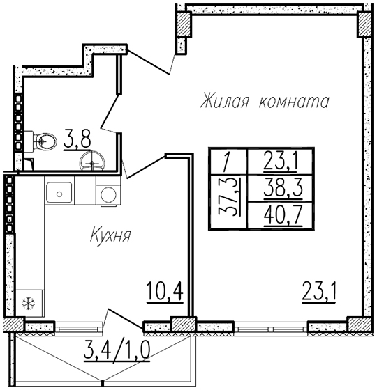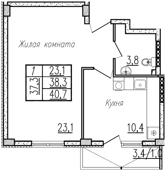 | 1 | 47.60 / 23.1 м² | от 4 831 400 руб. (101 500 руб./м²) | Планировка | |