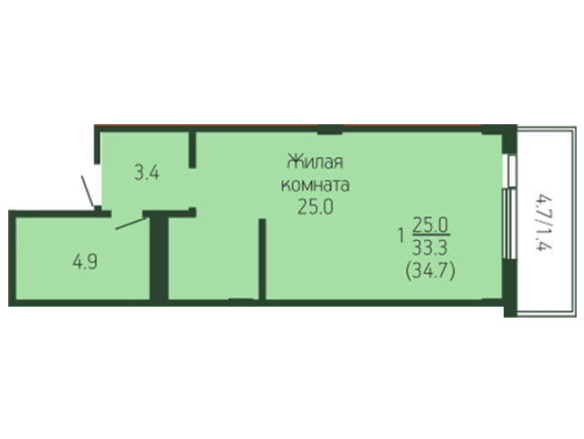 1 40.7 / 18.7 м² от 4 720 000 руб. (115 971 руб./м²) Планировка
