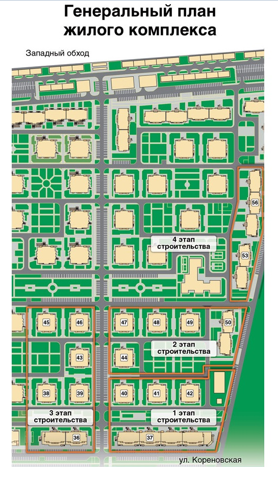 Сдача комплекса идет с большой задержкой. Перенос сроков произошел из-за проблем с коммуникациями. Изначально планировалось, что прокладывать коммуникации они будут совместно с другим застройщиком, но не получилось. Котельную высокой мощности для всего комплекса уже построили.
