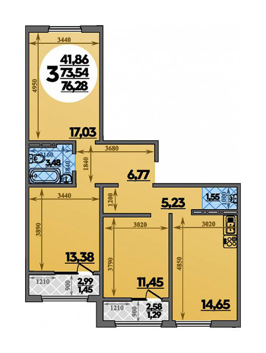| 3 | 76.32 / 41.86 м² | от 6 968 016 руб. (91 300 руб./м²) | Планировка | |