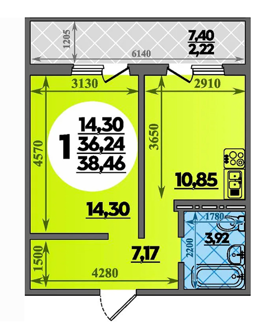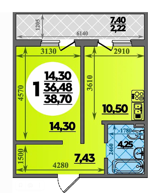 | 1 | 38.7 / 14.3 м² | от 4 144 770 руб. (107 100 руб./м²) | Планировка | |