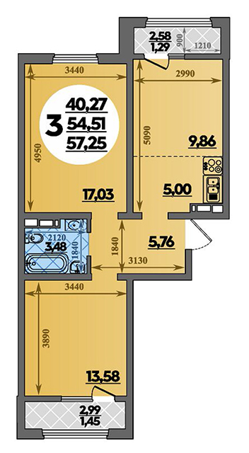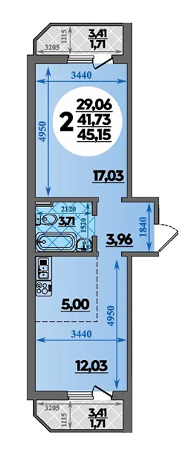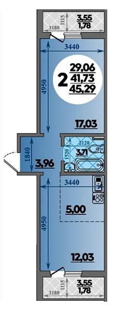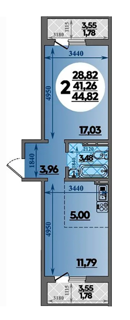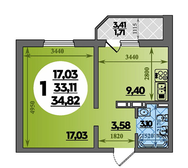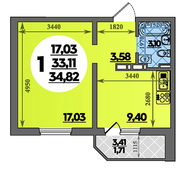 | 1 | 34.82 / 17.03 м² | от 3 812 790 руб. (109 500 руб./м²) | Планировка | |