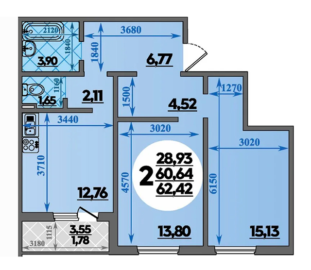 | 2 | 62.42 / 28.93 м² | от 6 229 516 руб. (99 800 руб./м²) | Планировка | |