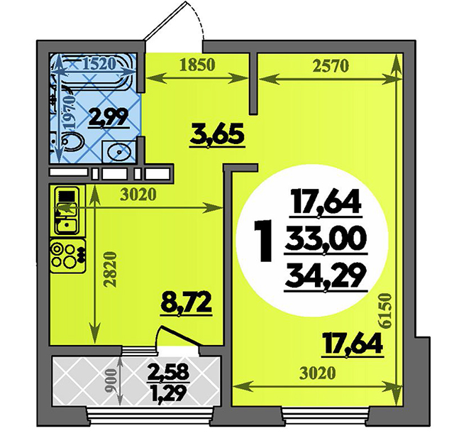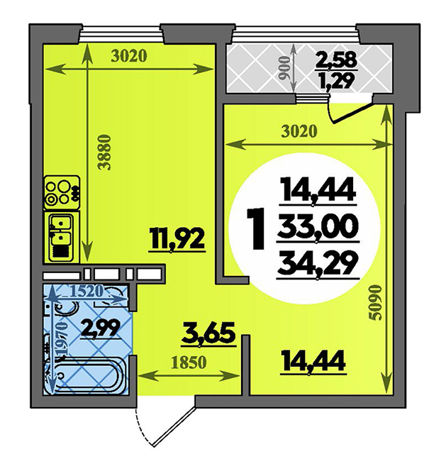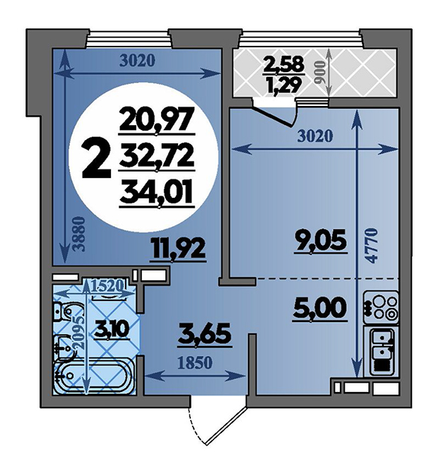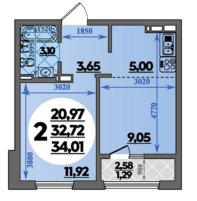 | 1 | 34.01 / 20.97 м² | от 3 778 511 руб. (111 100 руб./м²) | Планировка | |