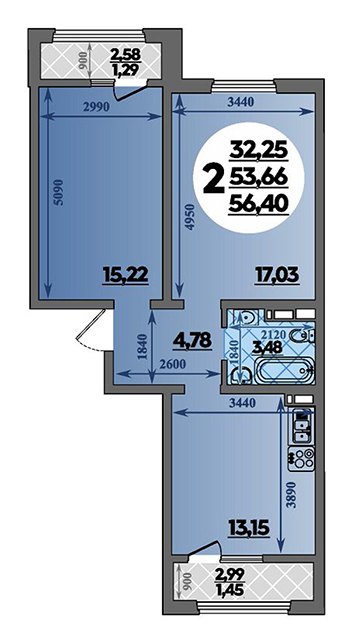 | 2 | 56.4 / 32.25 м² | от 5 735 880 руб. (101 700 руб./м²) | Планировка |