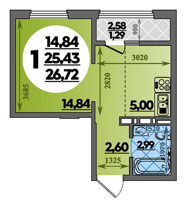 | студия | 26.72 / 14.84 м² | от 3 532 384 руб. (132 200 руб./м²) | Планировка | |