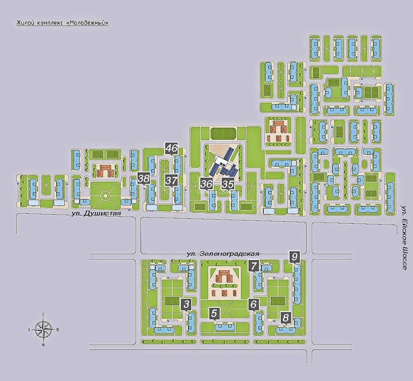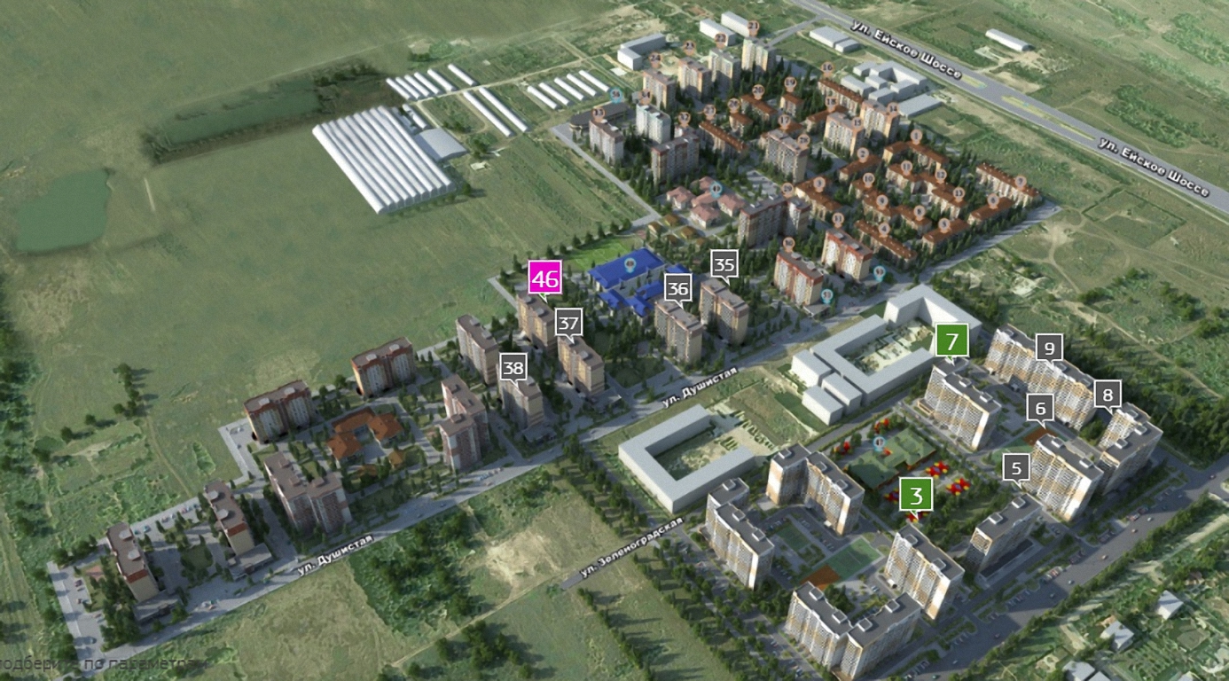 ЖК “Молодежный” – это крупный проект в Краснодаре, рассчитанный на строительство нескольких десятков разносекционных панельных домов разной этажности, общей вместимостью почти в 15 тыс. человек. В проекте застройщика предусмотрено также развитие инфраструктуры района.