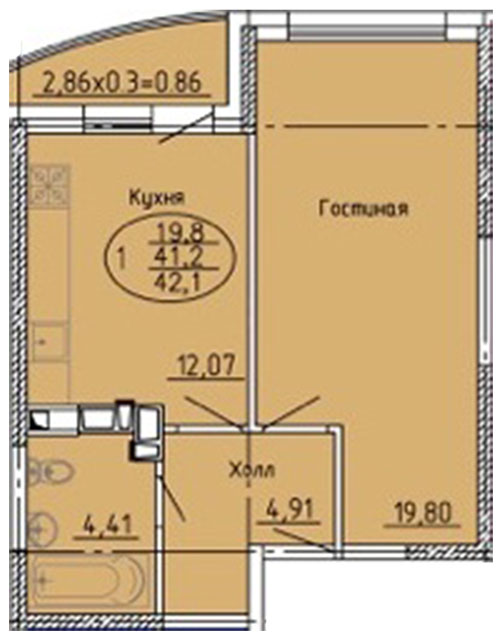 | 1 | 42.1 / 19.8 м² | от 5 809 800 руб. (138 000 руб./м²) | Планировка | |