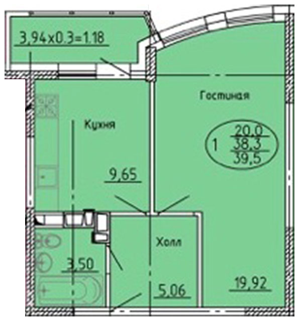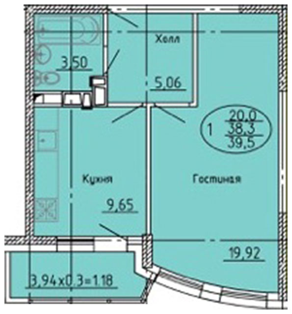 | 1 | 39.5 / 20 м² | от 5 411 500 руб. (137 000 руб./м²) | Планировка | |