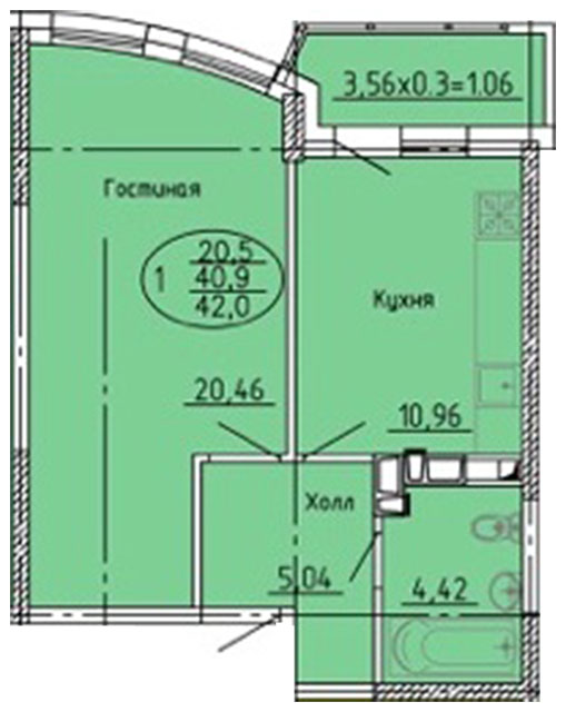 | 1 | 42 / 20.5 м² | от 5 796 000 руб. (138 000 руб./м²) | Планировка | |
