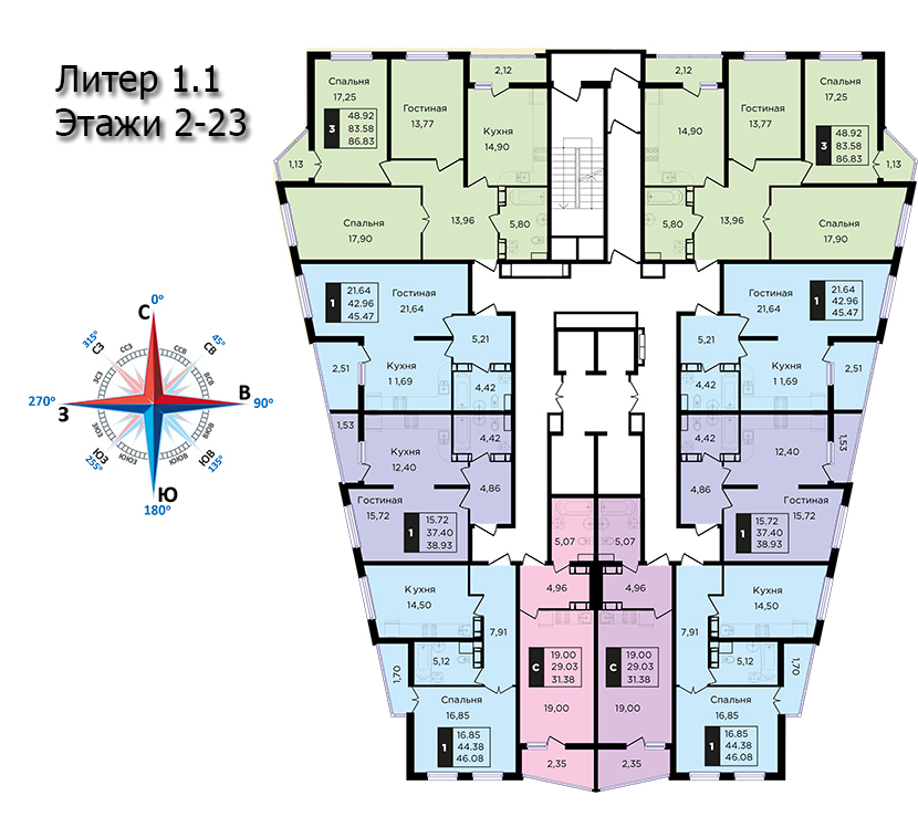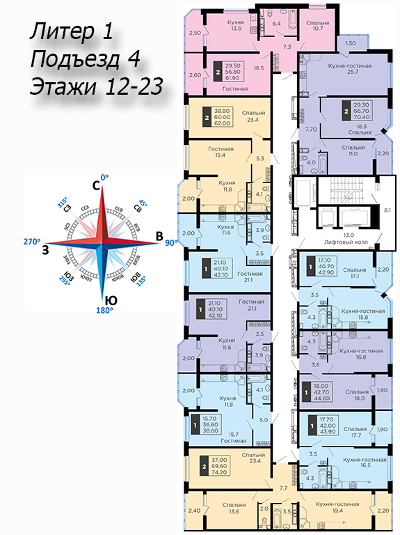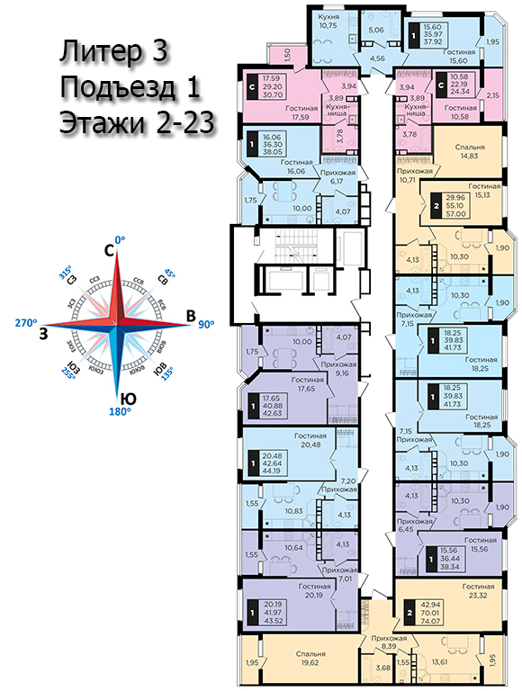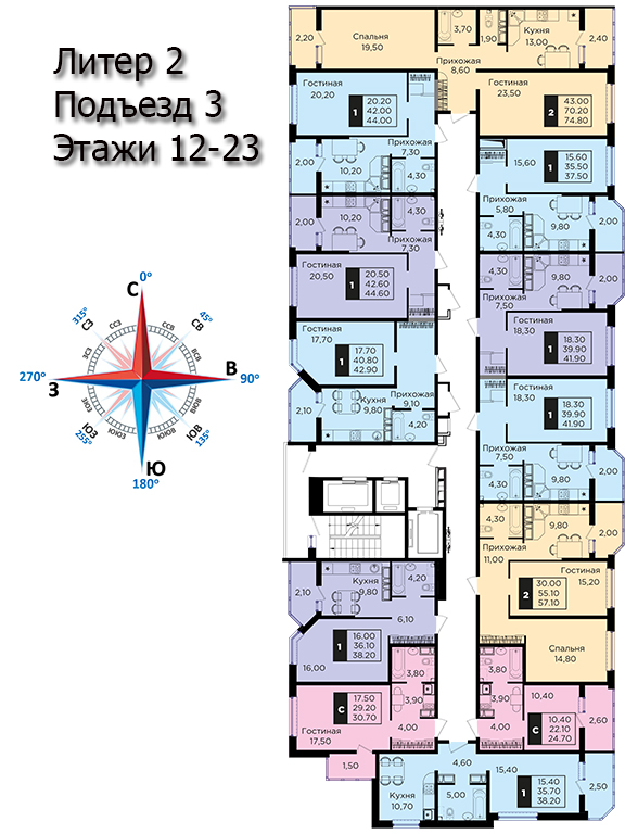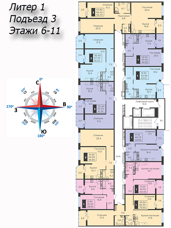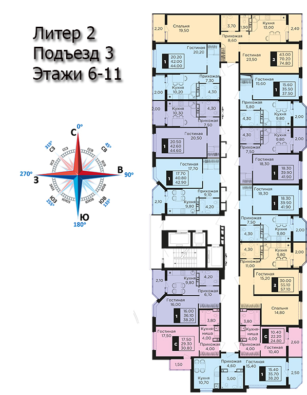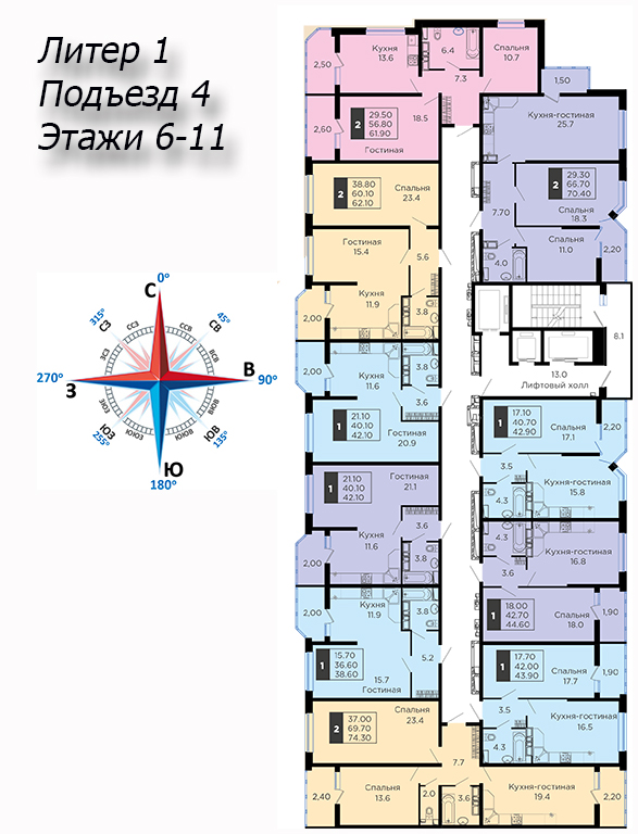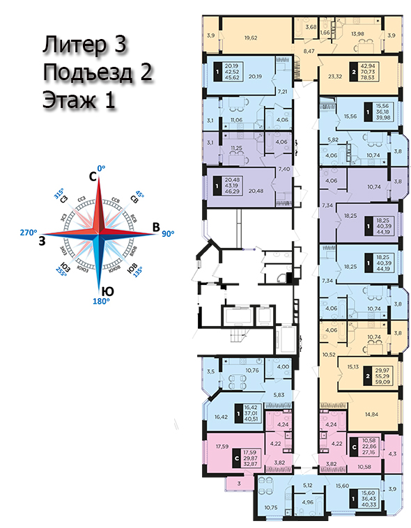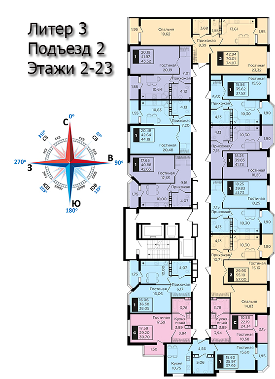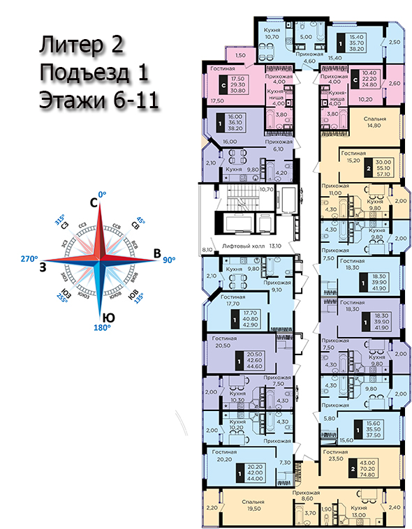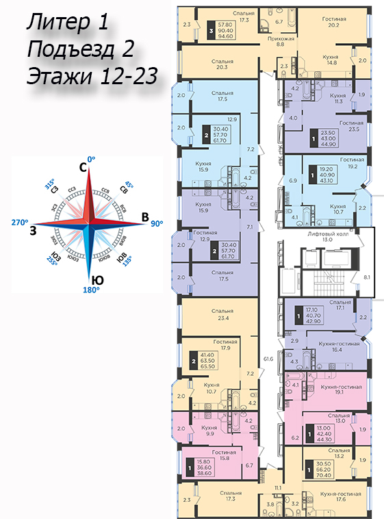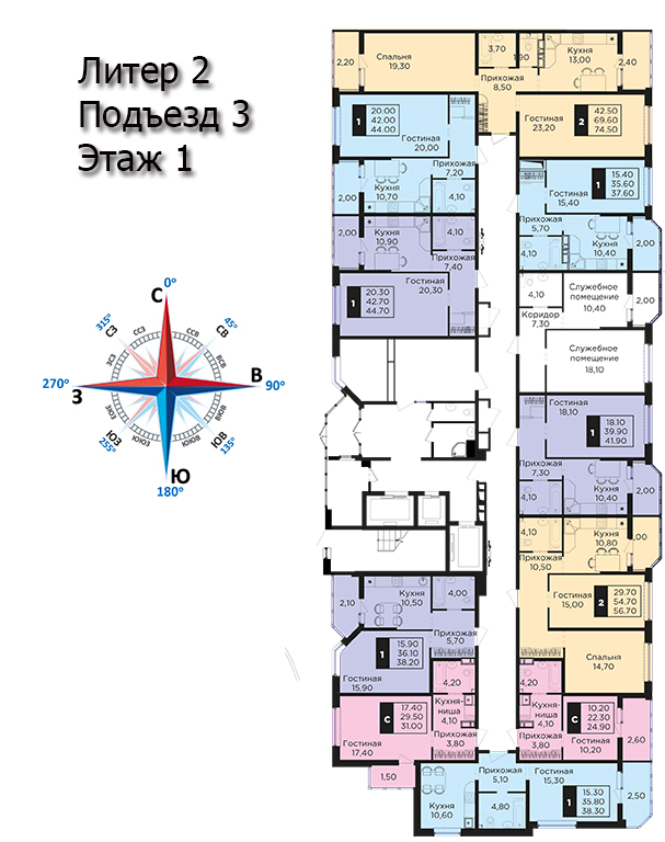 | 2 | 62 / 30.7 м² | от 8 822 600 руб. (142 300 руб./м²) | Планировка | |