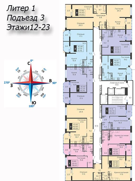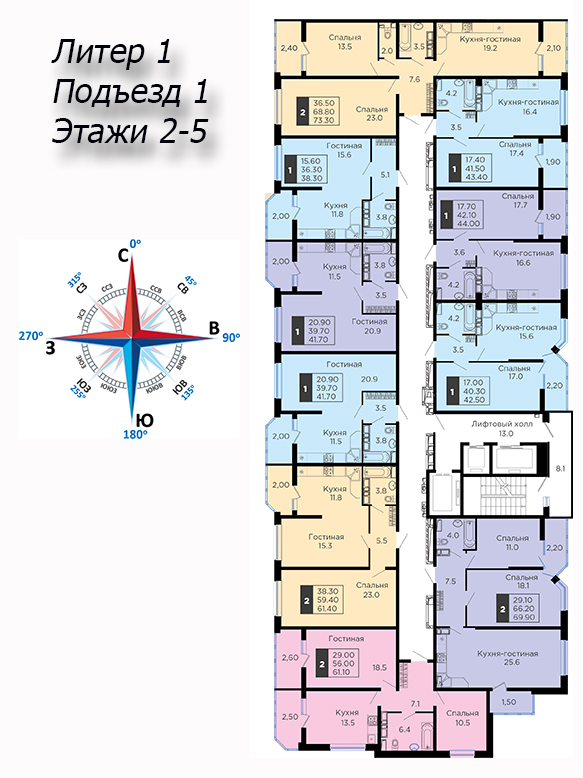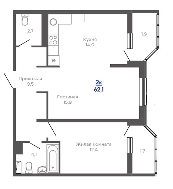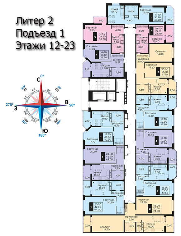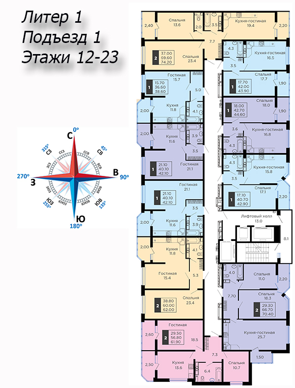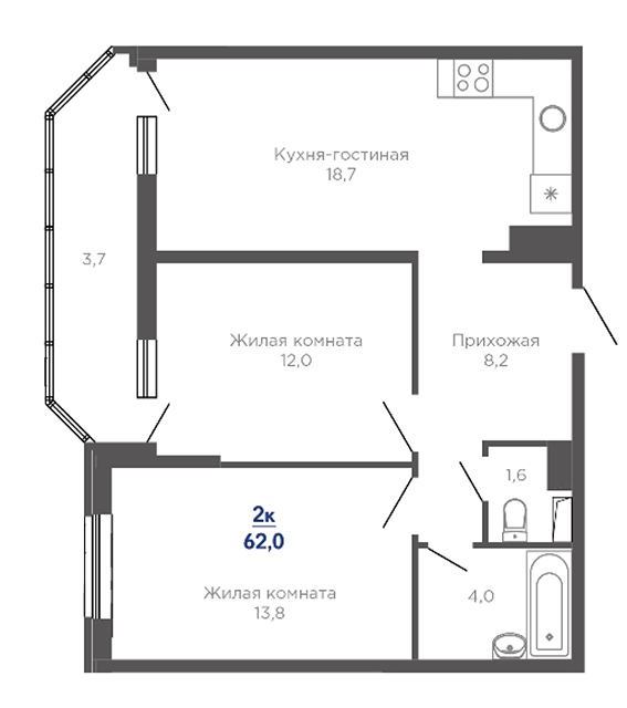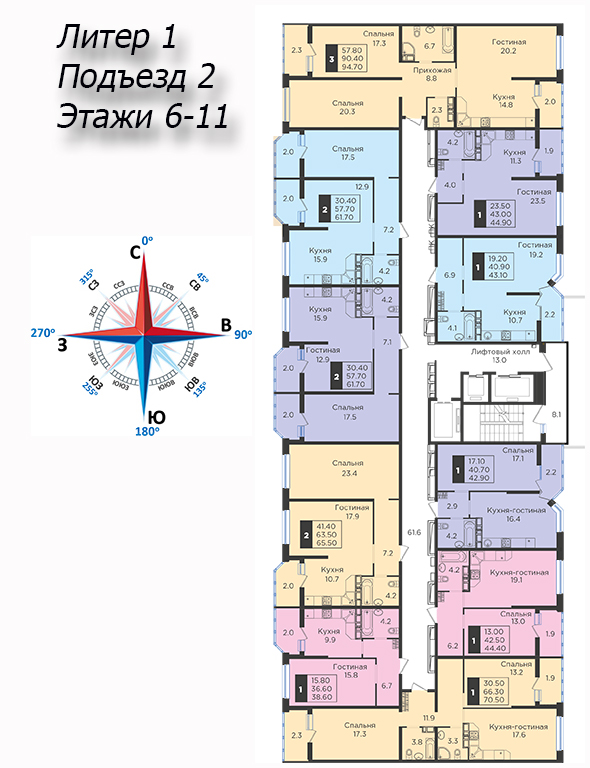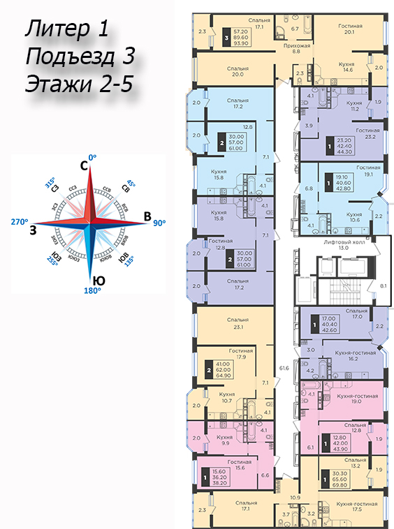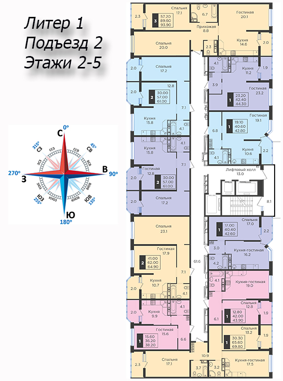 | 2 | 62 / 30.7 м² | от 8 599 400 руб. (138 700 руб./м²) | Планировка | |