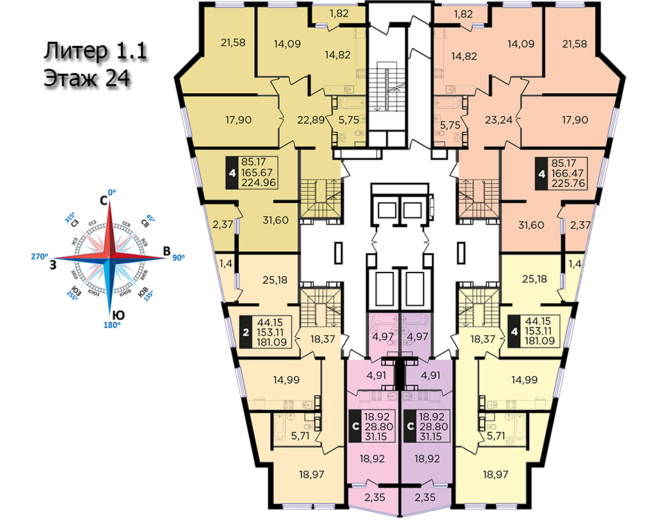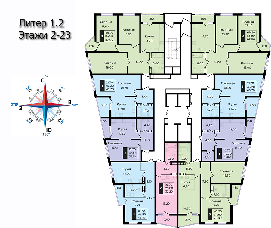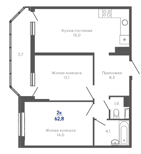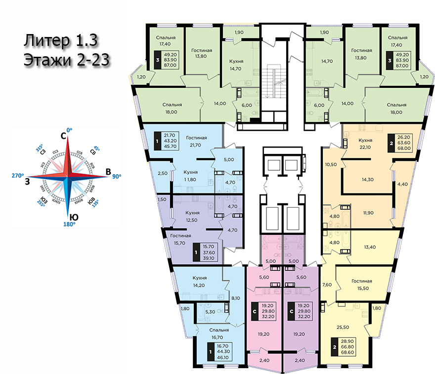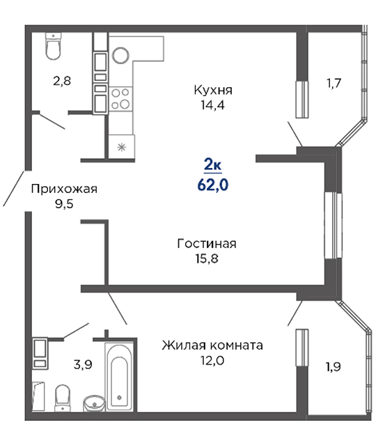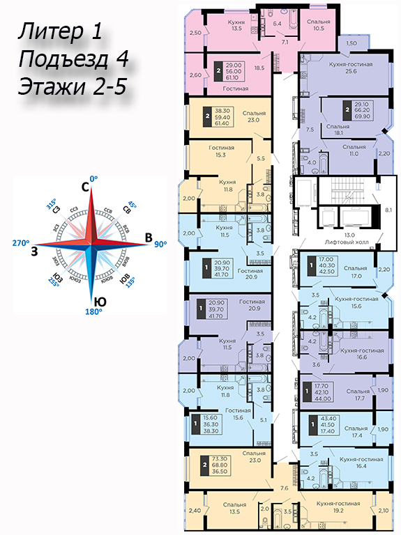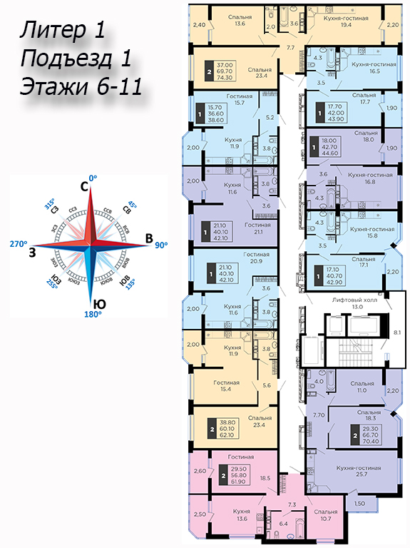| 2 | 62 / 30.7 м² | от 8 599 400 руб. (138 700 руб./м²) | Планировка | |