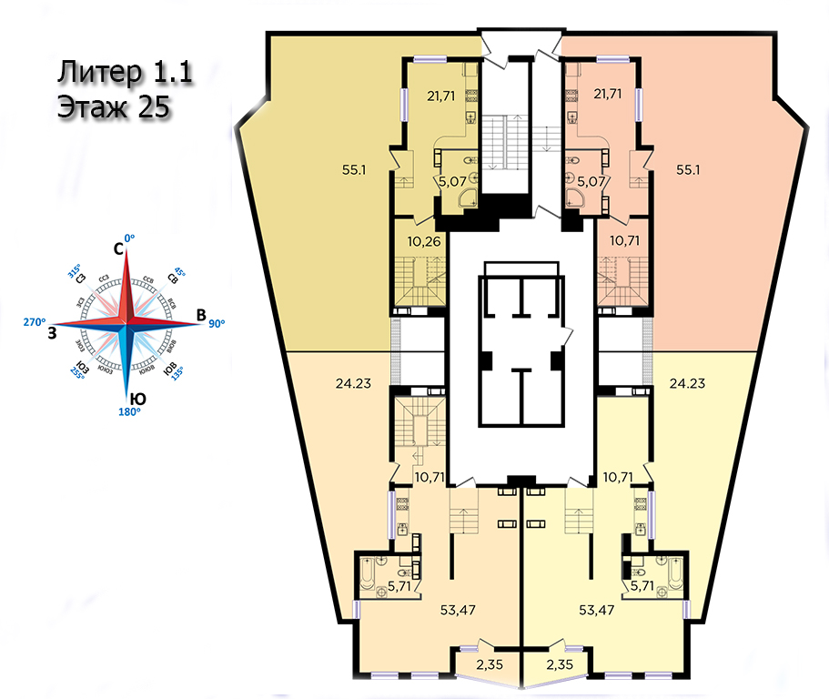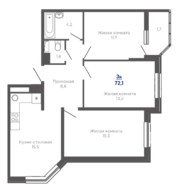| 3 | 72.9 / 40.5 м² | от 10 206 000 руб. (140 000 руб./м²) | Планировка |