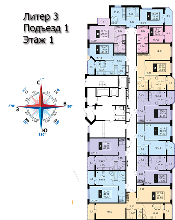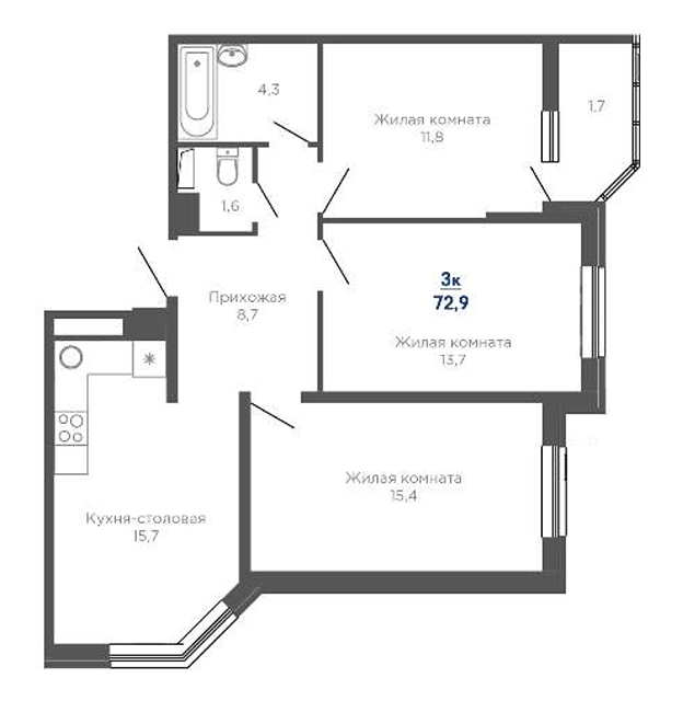 | 3 | 72.9 / 40.5 м² | от 10 278 900 руб. (141 000 руб./м²) | Планировка |
