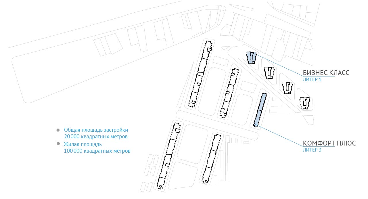 Дома возводятся по уникальному архитектурному проекту, отделка фасадов выполняется из керамогранита, в зданиях бизнес-класса присутствует витражное остекление. В объекте продаются студии, одно-, двух- и трёхкомнатные квартиры, общая площадь которых варьируется от 25,8 до 91 квадратных метров, высота потолков – 2,8 метра.