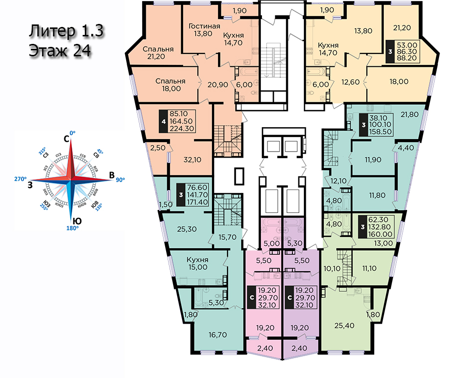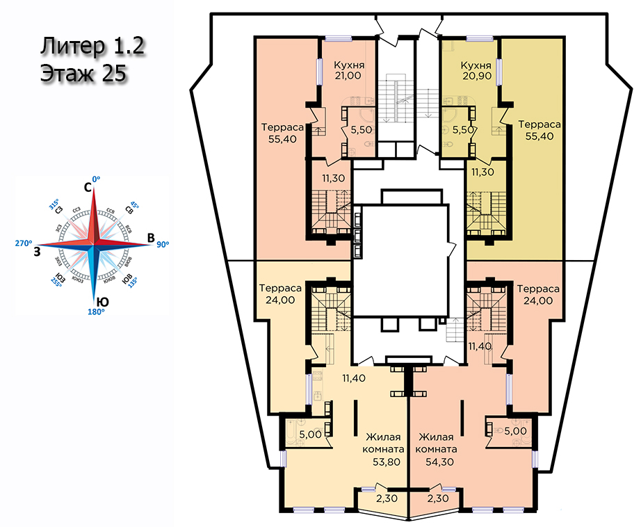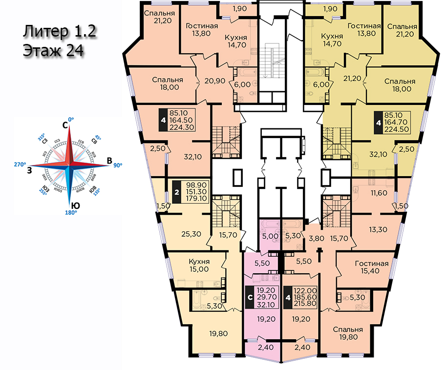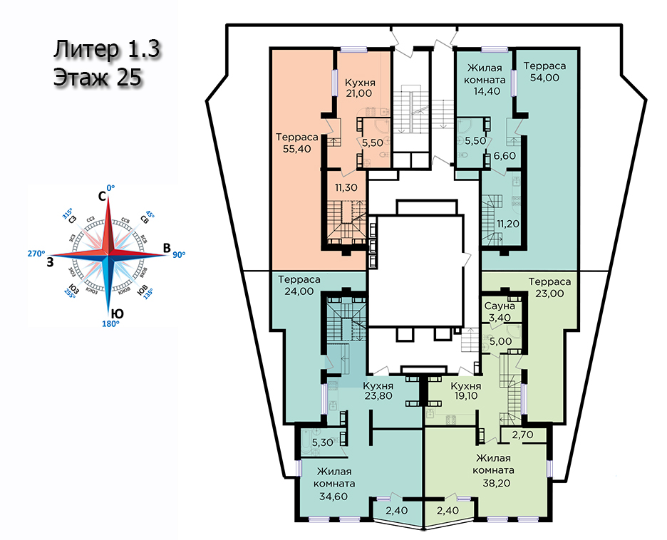 | 3 | 170.5 / 98.9 м² | от 23 017 500 руб. (135 000 руб./м²) | Планировка | Пентхаус, терраса, 2 уровня |