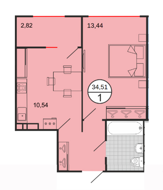 | 1 | 34.51 / 13.44 м² | от 4 382 770 руб. (127 000 руб./м²) | Планировка | |