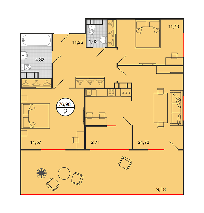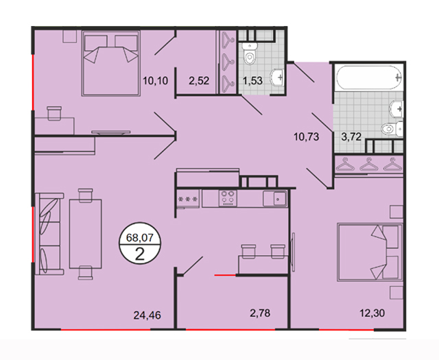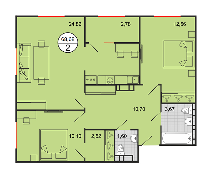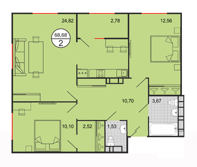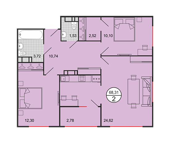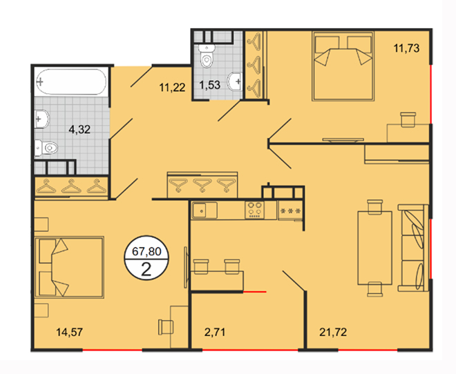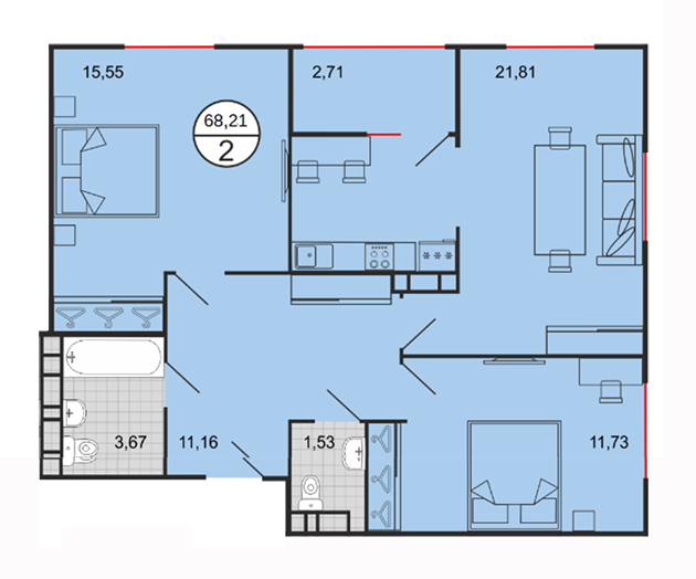 | 2 | 68.31 / 22.4 м² | от 7 923 960 руб. (116 000 руб./м²) | Планировка | |