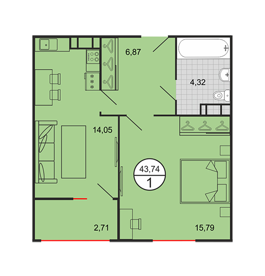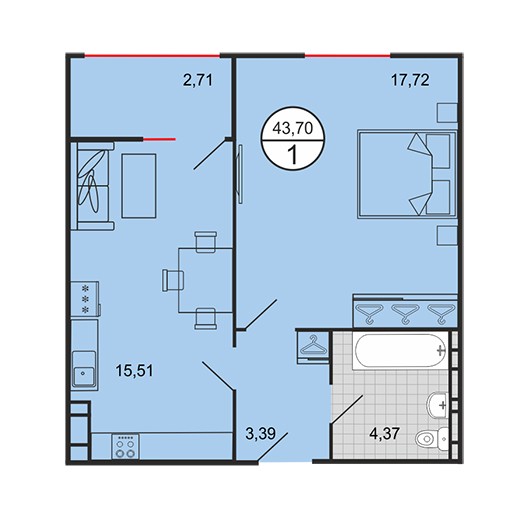 | 1 | 43.7 / 17.72 м² | от 5 549 900 руб. (127 000 руб./м²) | Планировка | |