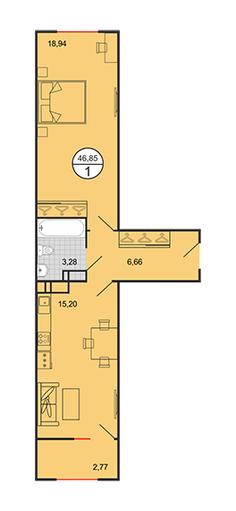 | 1 | 46.92 / 18.94 м² | от 5 958 840 руб. (127 000 руб./м²) | Планировка | |