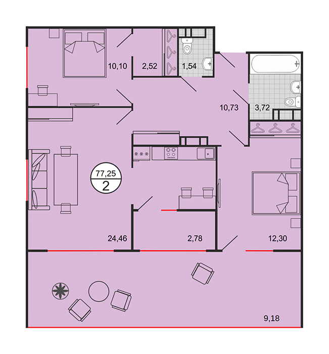 | 2 | 77.42 / 26.3 м² | от 8 980 720 руб. (116 000 руб./м²) | Планировка |