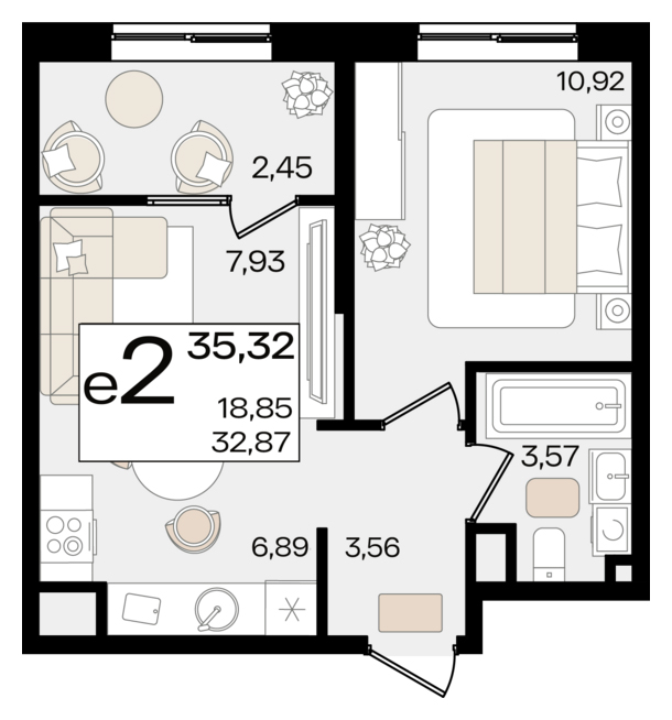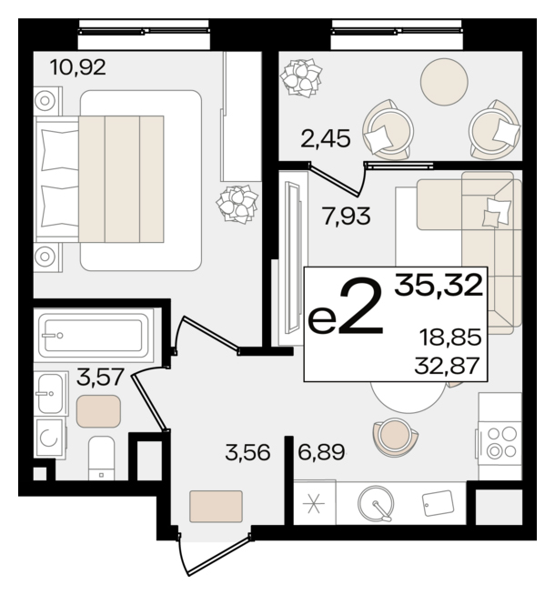 | 1 | 35.32 / 10.92 м² | от 11 383 636 руб. (322 300 руб./м²) | Планировка | |