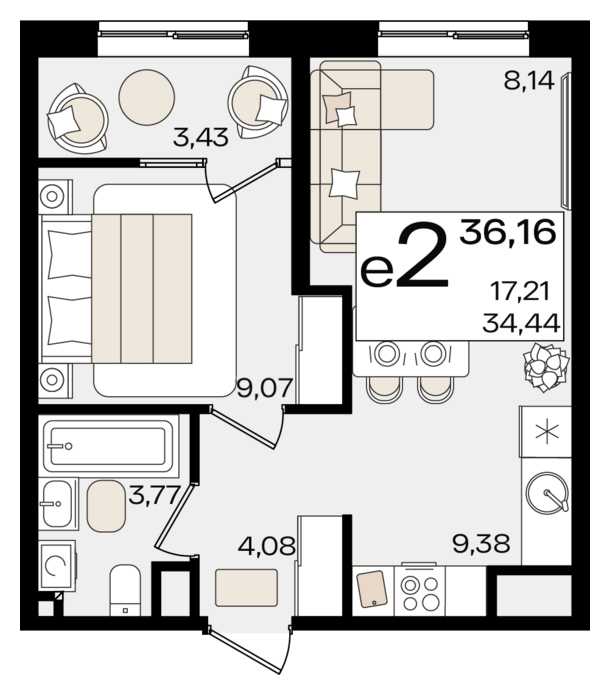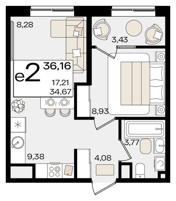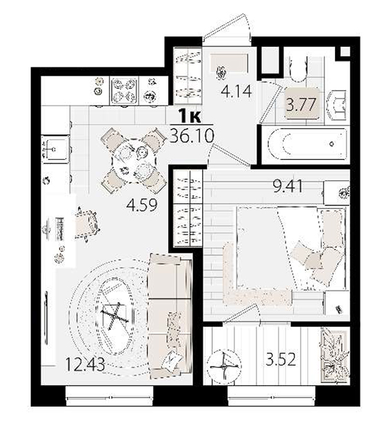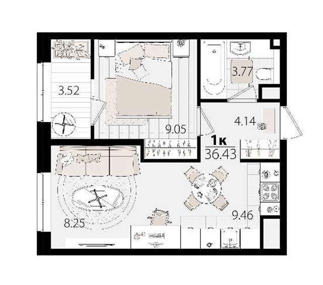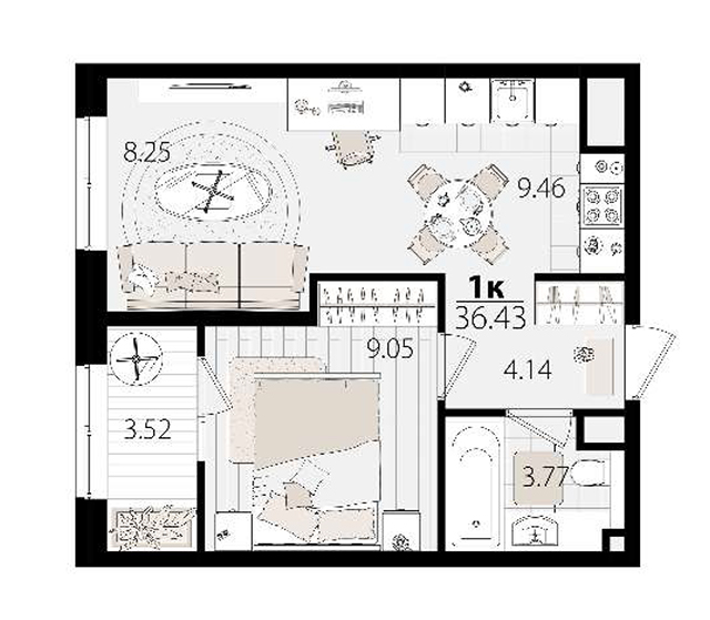 | 1 | 36.16 / 8.93 м² | от 10 952 864 руб. (302 900 руб./м²) | Планировка | |