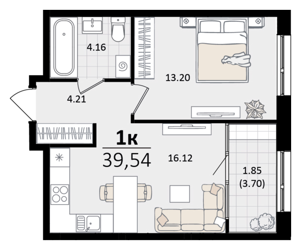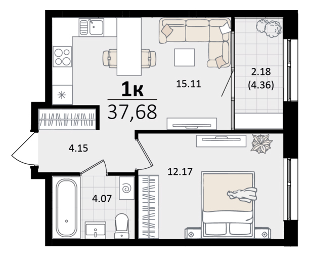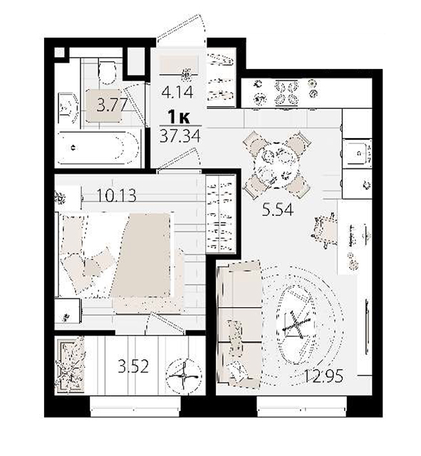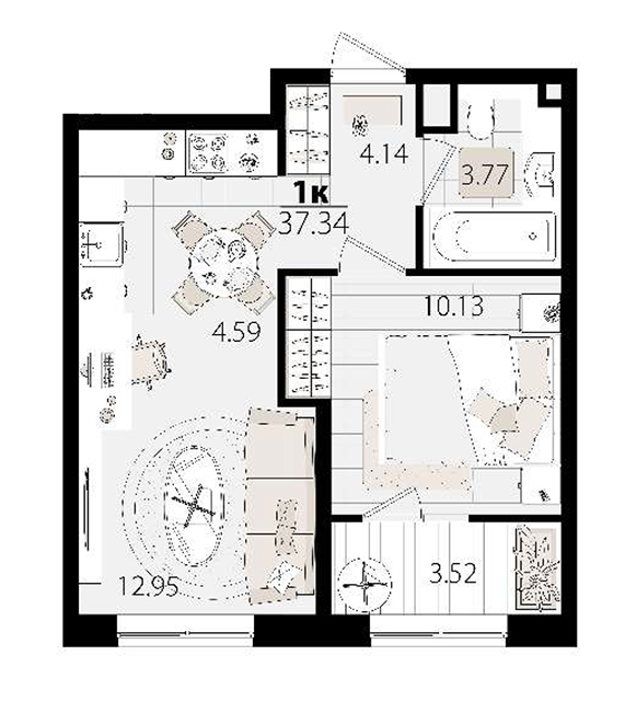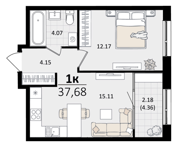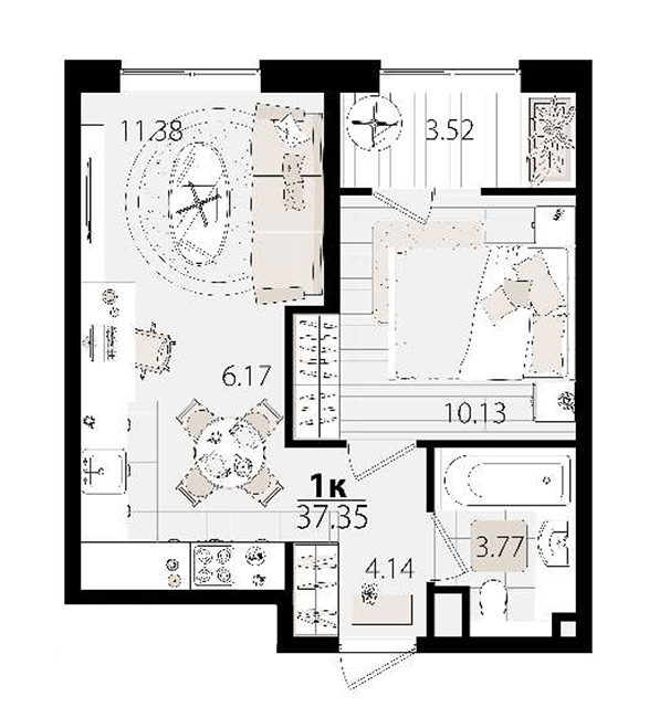 | 1 | 37.07 / 10.13 м² | от 11 343 420 руб. (306 000 руб./м²) | Планировка | |
