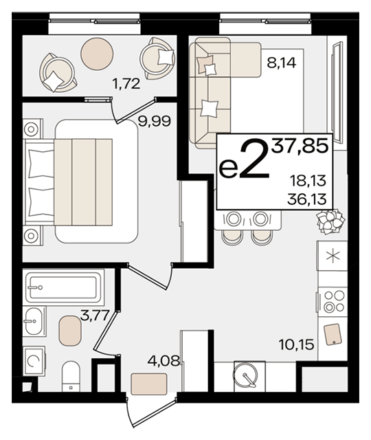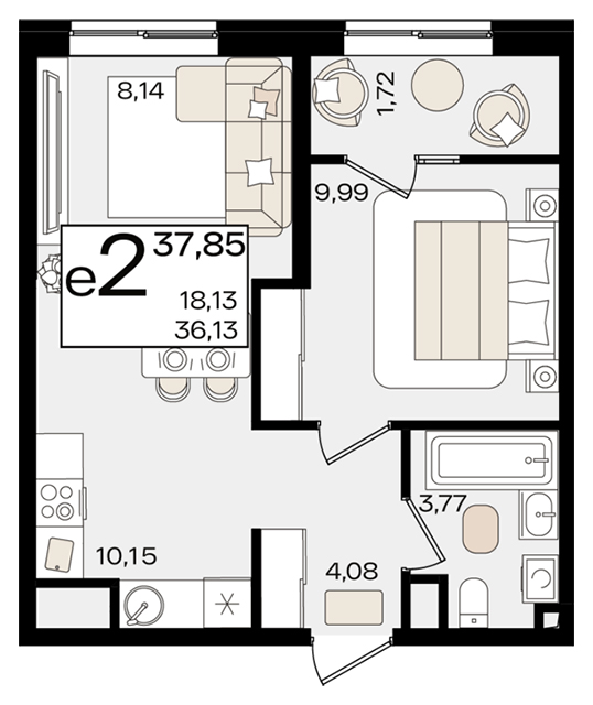 | 1 | 37.85 / 10.13 м² | от 11 116 545 руб. (293 700 руб./м²) | Планировка | |