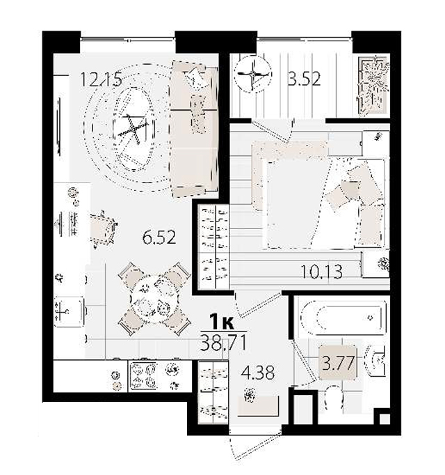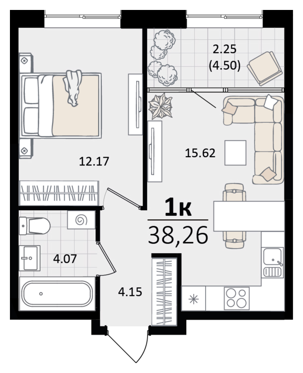 | 1 | 38.26 / 12.17 м² | от 10 854 362 руб. (283 700 руб./м²) | Планировка | |