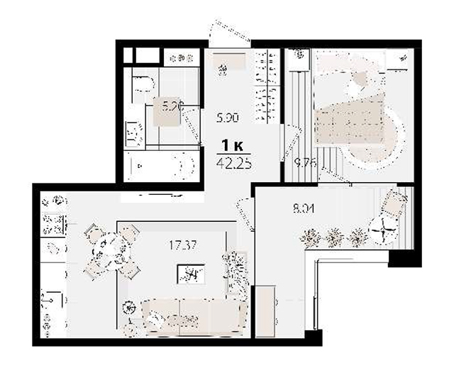 | 1 | 41.81 / 9.75 м² | от 12 923 471 руб. (309 100 руб./м²) | Планировка | |