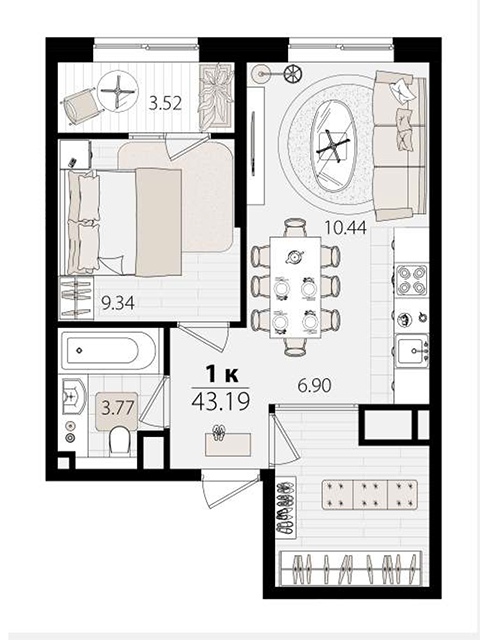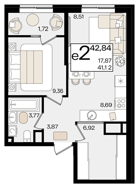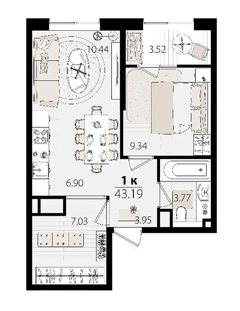 | 1 | 42.68 / 9.34 м² | от 12 582 064 руб. (294 800 руб./м²) | Планировка | |